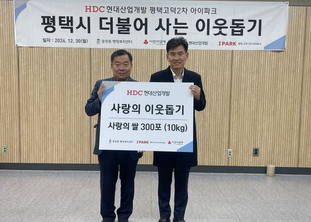 이번 더불어 사는 이웃돕기 사랑의 쌀 전달식은 지난 30일 평택시 중앙동 행정복지센터에서 진행됐고 중앙동 동장(한극만), HDC현대산업개발 평택고덕2차아이파크 현장소장 등이 참석했으며, 전달된 사랑의 쌀 300포(10kg)는 도움의 손길이 필요한 이웃들에게 전달될 예정이다.