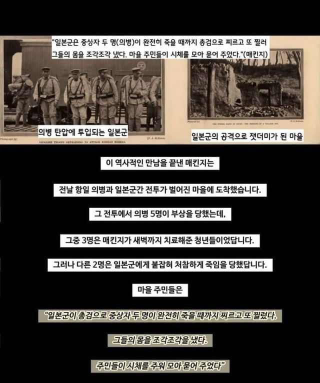 일제의 만행을 목격하고 양심의 소리에 따라 대한 독립을 지원하는 친한파로 돌아섰고 사후 대한민국 정부에 의해 건국훈장 독립장이 추서됨