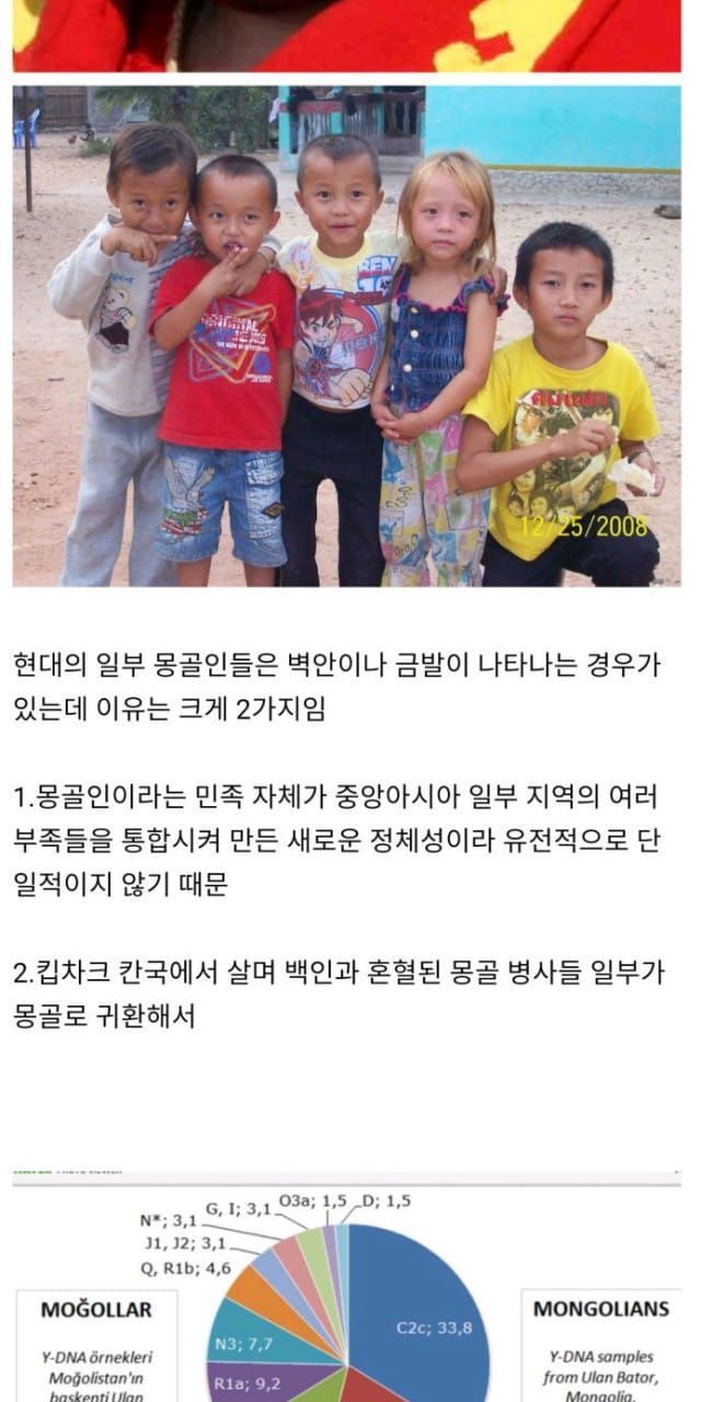 자연 금발 혹은 벽안이 나타나는 몽골인들