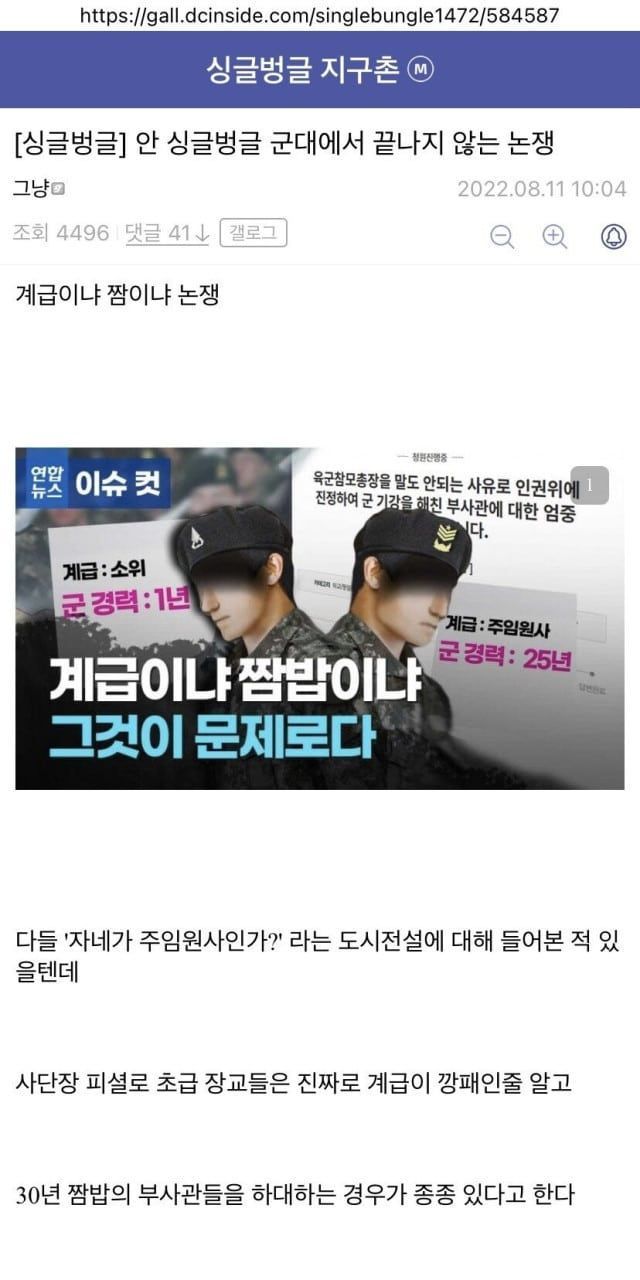 군대에서 영원히 끝나지 않을 논쟁…