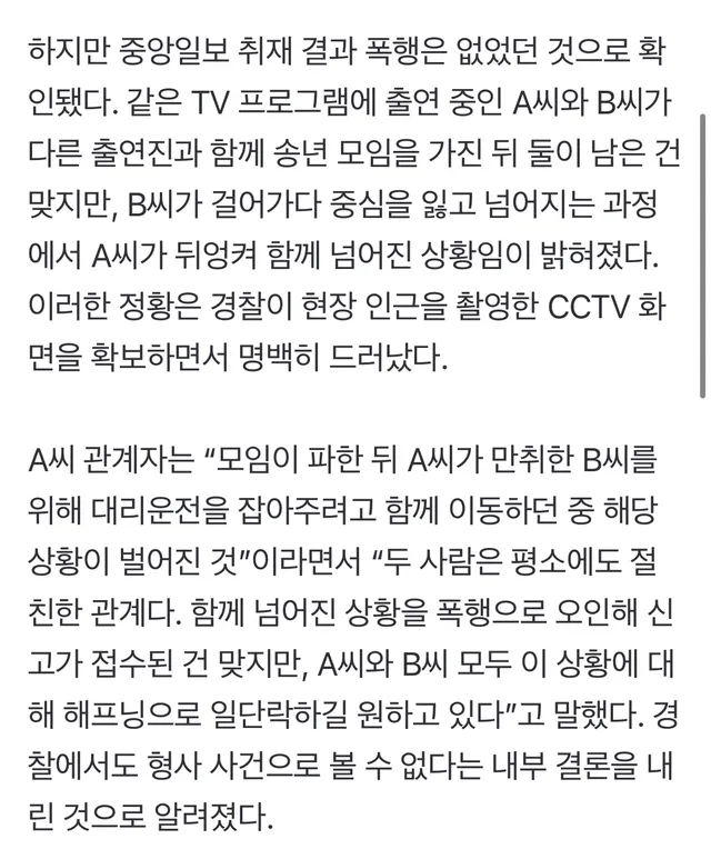 이따 나온 기사: 폭행은 맞는데 다친 건 아님