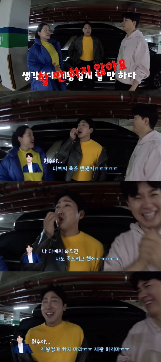 이를 들은 손헌수는 "'헌수야, 다예 씨 죽을 뻔했어. 다예 씨 죽으면 나도 죽으려고 했어"라고 박수홍의 성대모사를 하며 함께 나눴던 통화 내용을 공개했다. 그는 "헌수야 제왕절개 하지 마라"고 외치며 웃음을 안겼다.