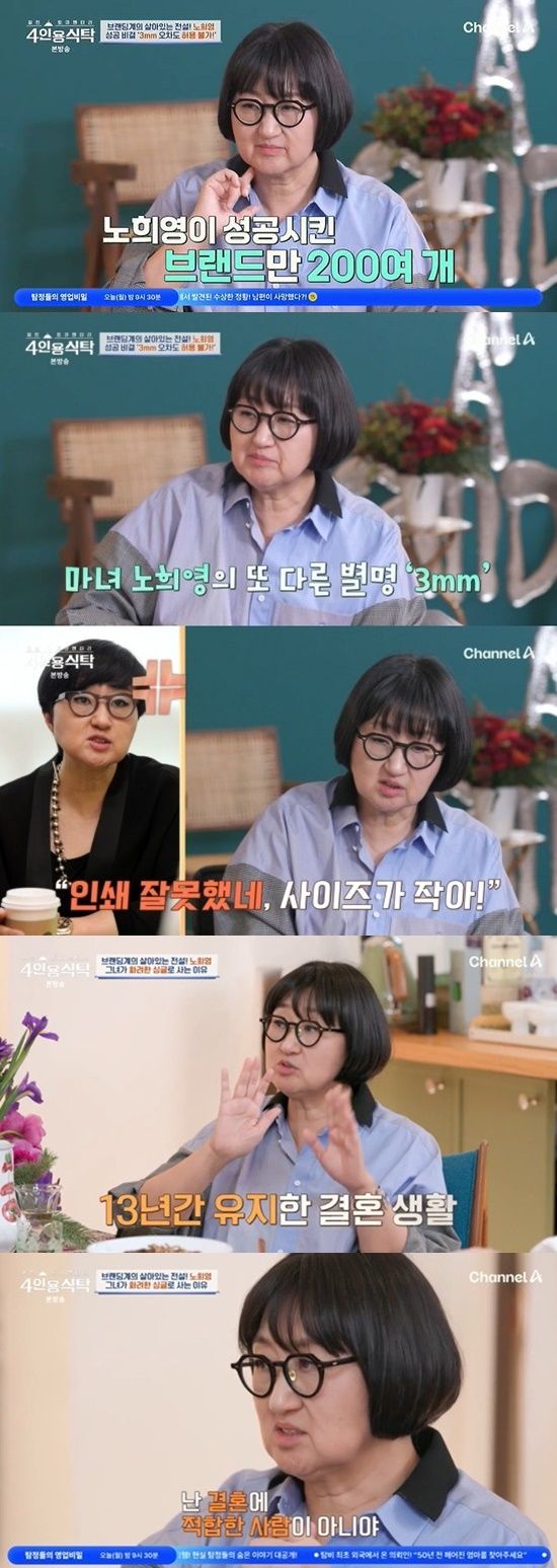 (엑스포츠뉴스 김유진 기자) 노희영이 20대에 디자이너로 성공한 사연과 이혼 과거를 전했다.