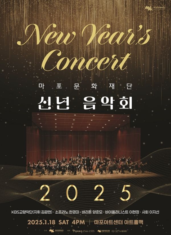 마포문화재단이 오는 1월 18일 마포아트센터 아트홀맥에서 KBS교향악단과 함께 새해를 여는 '2025 신년음악회'를 개최한다. KBS교향악단이 지휘자 김광현과 2024년 제오르제 에네스쿠 국제 콩쿠르에서 바이올린 부문 준우승이자 최연소 수상자인 이현정 바이올리니스트 협연으로 새해를 여는 힘찬 무대를 선보인다.