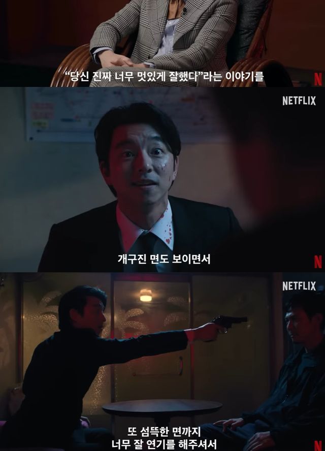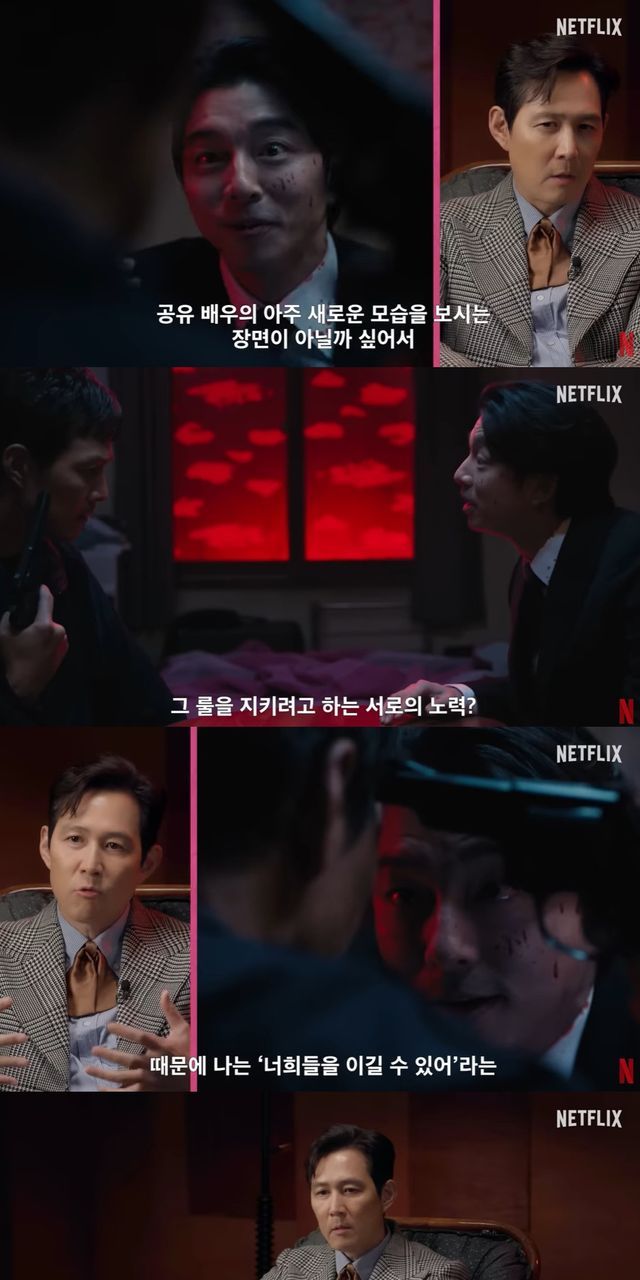 이정재는 "아마 공유를 좋아하는 팬들은 공유의 아주 새로운 모습을 보는 장면이 아닐까 싶다. 굉장히 좋아하실 거 같다"고 이야기했다.