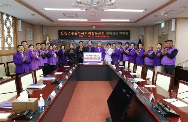[파이낸셜경제=김예빈 기자] 신안군정원수사회적협동조합 임원과 회원들은 지난 27일 신안군청을 방문해 (재)신안군장학재단에 2028년까지 5년간 장학기금 5억 원 기탁을 약정하고 1억 원을 전달했다.