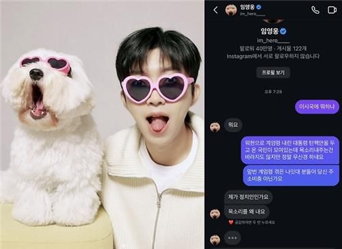 임영웅은 지난 7일, 자기가 정치인도 아니고 대통령 탄핵안 가결과 무슨 상관이냐며 SNS에서 팬과 설전을 벌이기도 했다.