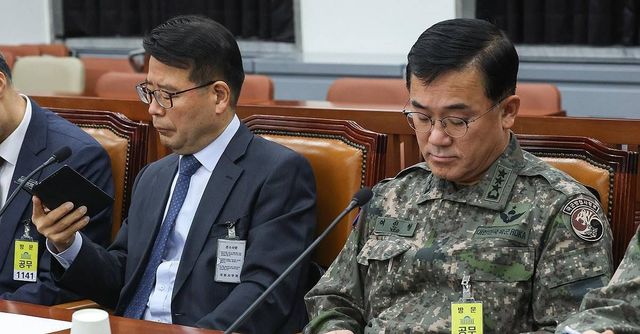 여인형 국군방첩사령관(오른쪽)이 지난 7일 오전 서울 여의도 국회에서 열린 정보위원회 전체회의에 출석하고 있다 / 연합뉴스