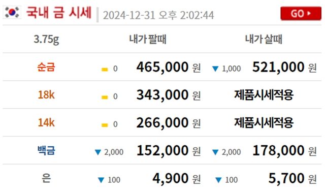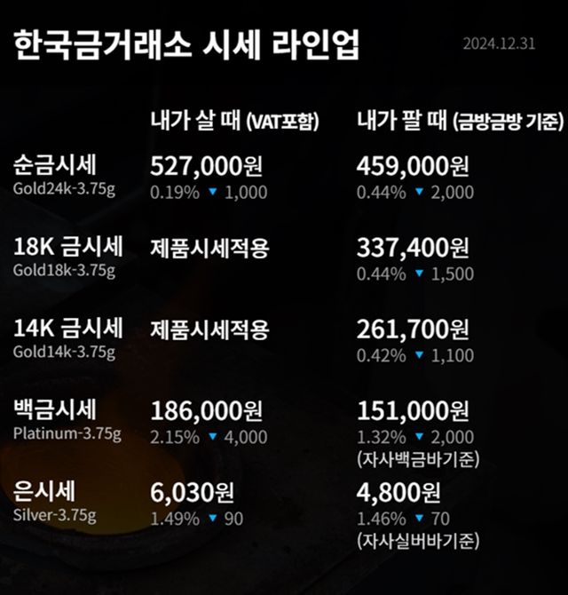순금(24K) : 매입가 52만 7000원 / 매도가 45만 9000원