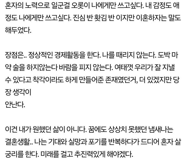 사랑이 없는 남편과 이혼을 결심하며 넋두리