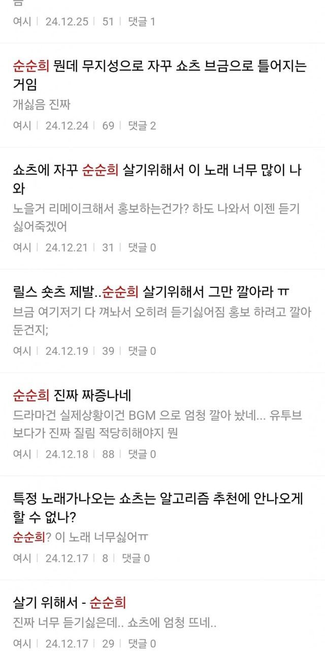 숏츠, 릴스 보는사람들이 요즘 가장 혐오한다는 가수 이름