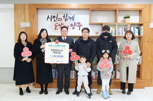 이번 전달식에는 강수현 양주시장, 김미라 원장과 교직원 및 원아와 학부모가 참석했으며 성금은 경기 사회복지공동모금회를 통해 관내 취약계층에 전달될 예정이다.
