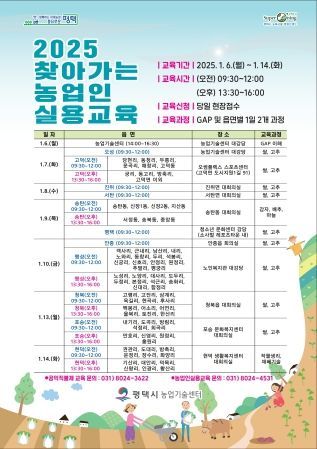 농업인 실용교육을 희망하는 평택시민이면 누구나 신청이 가능하며, 당일 현장 접수로 교육을 받을 수 있다.