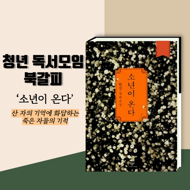 북갈피의 여섯 번째 책은 한강 작가의 <소년이 온다> 이다. 책을 읽은 청년들이 서로 어떠한 생각을 나눴는지 지금부터 소개한다. 다만, 자유로운 토의를 위해 실명 대신 가명을 사용했다. 소년이>