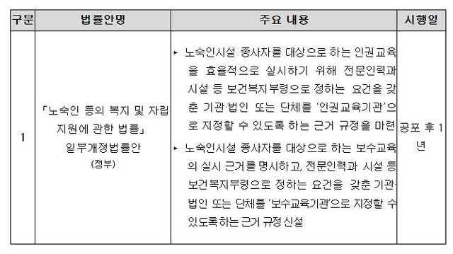 이번 '노숙인 등의 복지 및 자립지원에 관한 법률' 개정으로 보건복지부장관이 전문인력과 시설을 갖춘 기관·법인 또는 단체를 인권교육기관으로 지정할 수 있도록 하고, 노숙인시설 종사자에 대하여 보수교육을 실시할 수 있는 법적 근거를 마련했다. 이를 통해 노숙인시설 종사자 교육을 안정적으로 운영할 수 있게 됐다.