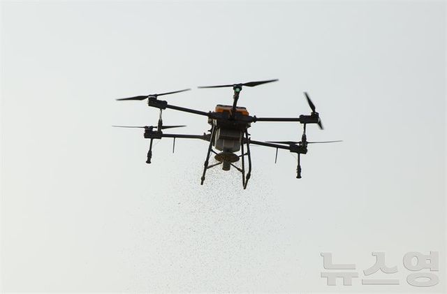 10여 명의 봉사단원들의 움직임이 분주하다. 볍씨를 실은 드론은 순식간에 하늘로 솟아올라 볍씨를 살포하기 시작한다. 드론을 따라 볍씨가 가루처럼 날린다. 순식간에 ‘급식 봉사’를 끝낸 드론은 다시 볍씨를 싣고 이번에는 반대 방향으로 날아오른다. 봉사단의 볍씨 뿌리기는 보통 한 시간 정도 계속된다.