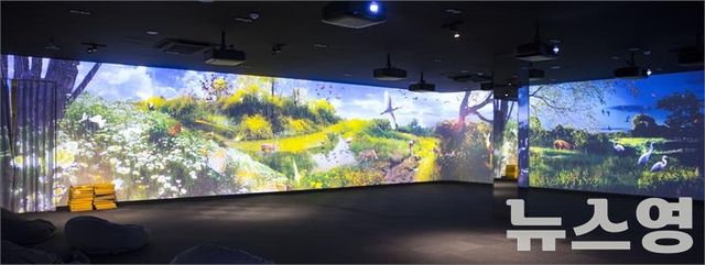 3개 벽면을 활용한 미디어아트를 통해 펼쳐지는 장항습지의 4계절은 단연 관람객을 압도한다. 마치 실제로 장항습지 한가운데 서 있는 느낌이다.