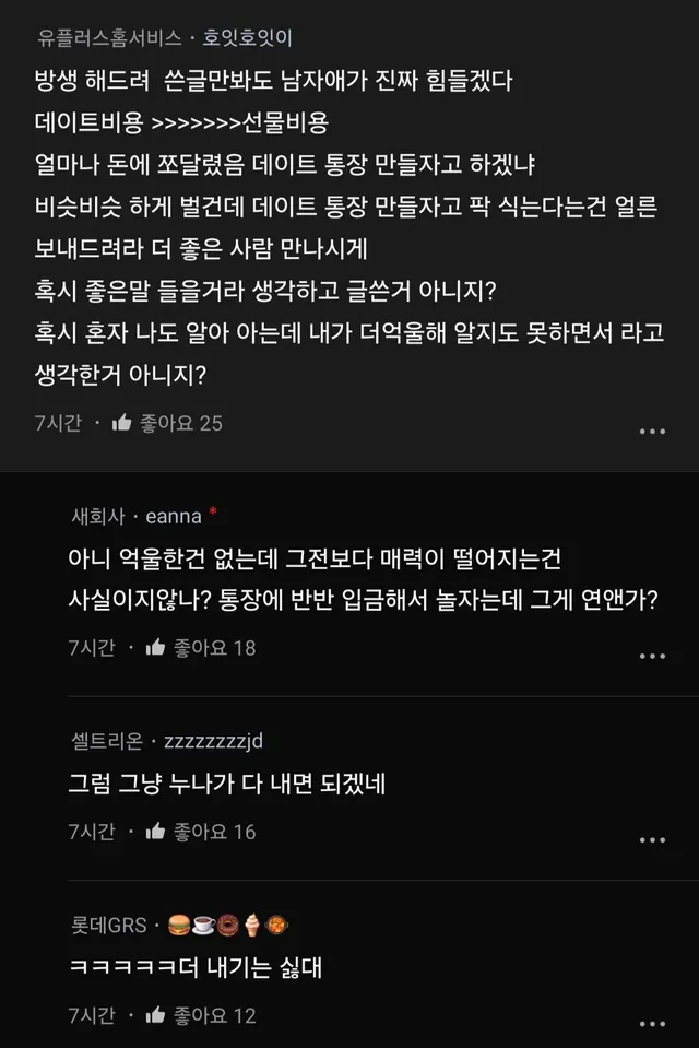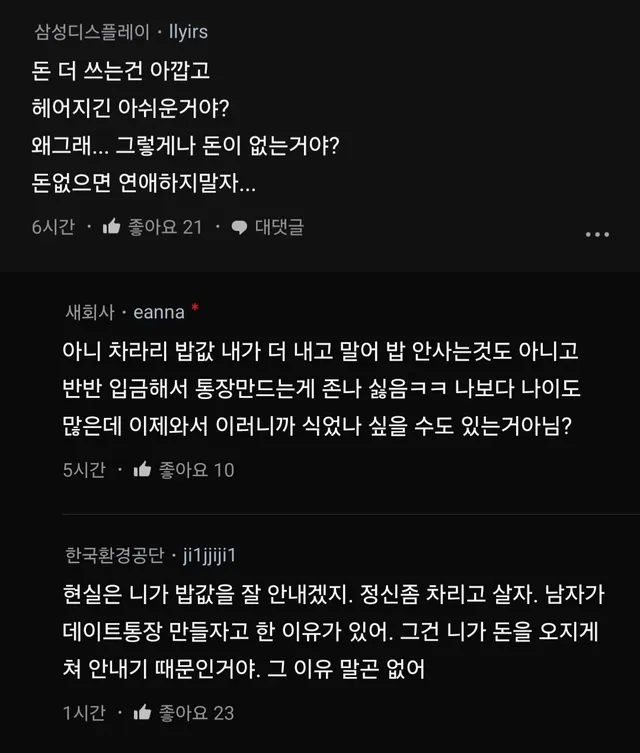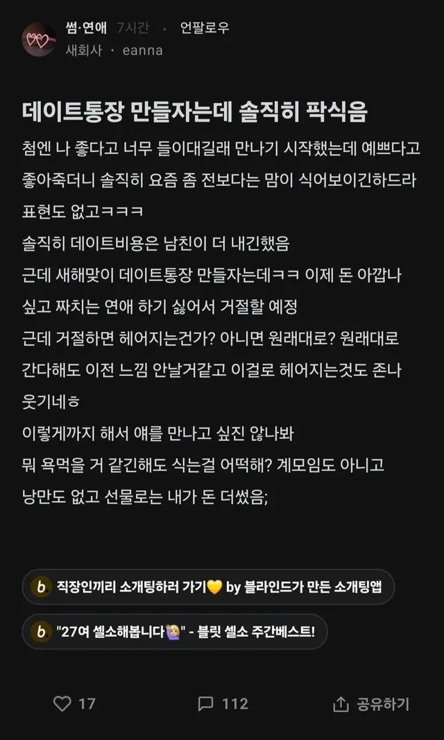 데이트 통장 만들자는데 솔직히 팍 식음