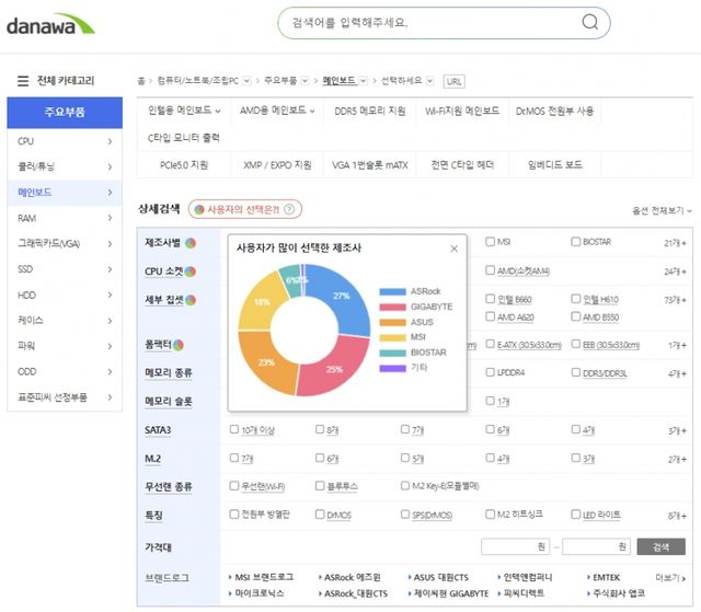 고성능 제품군과 전략적인 마케팅이 결합되면서 애즈락은 점유율을 급격히 끌어올렸고, 대만 3대 제조사를 모두 제치고 점유율 1위를 차지하는 성과를 냈다. 그 전환점이 된 날은 2024년 4월 9일이다. 다나와 메인보드 시장 점유율 자료에 따르면, 주요 메인보드 브랜드의 시장 점유율에서 2023년 대비 순위 변화가 관측됐다. 애즈락이 26%의 점유율로 전체 메인보드 시장에서 1위에 올랐으며, 2위는 ASUS(25%), 3위는 기가바이트(24%), 4위는 MSI(18%)였다.
