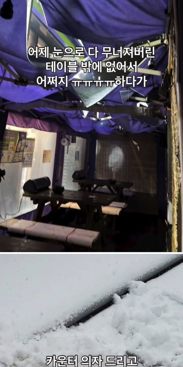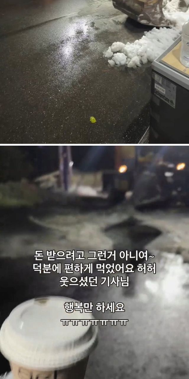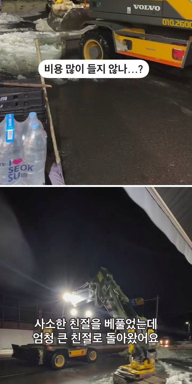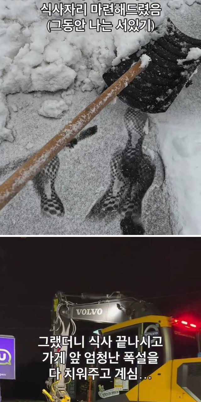 식사공간 내드렸더니 편의점 앞 쌓인 눈 치워준 굴착기 기사님