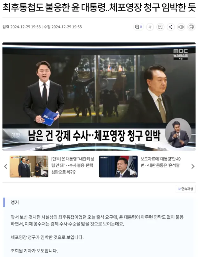 최후통첩도 불응한 윤 대통령.. 체포영장 청구 임박한 듯