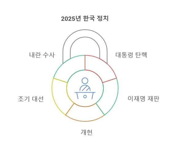 2025년 한국 정치는 △내란죄 수사, △ 윤석열 대통령 탄핵, △ 조기 대선, △ 이재명 재판, △ 개헌 등 다섯 가지 주요 변수를 중심으로 복잡다단한 정국이 전개될 것으로 예상된다. 5대 변수는 상호 연관되어 한국 정치의 향방을 결정짓는 핵심 요소로 작용할 것이다.
