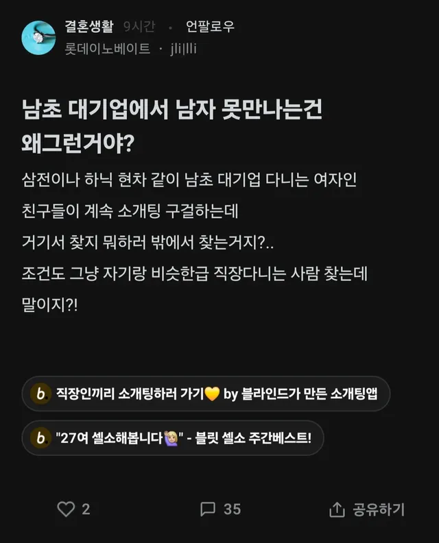 남초 대기업에서 남자 못 만나는건 왜 그런거야?