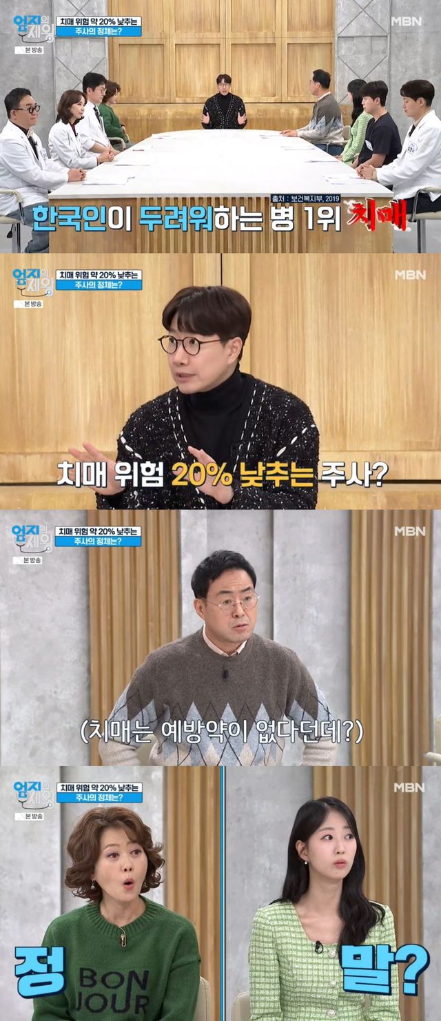 이날의 주제에 대해 '치매'라고 소개한 MC 조우종은 출연진들에게 "치매 위험을 20% 낮추는 주사가 있다면 어떻게 하시겠냐"고 질문했다.