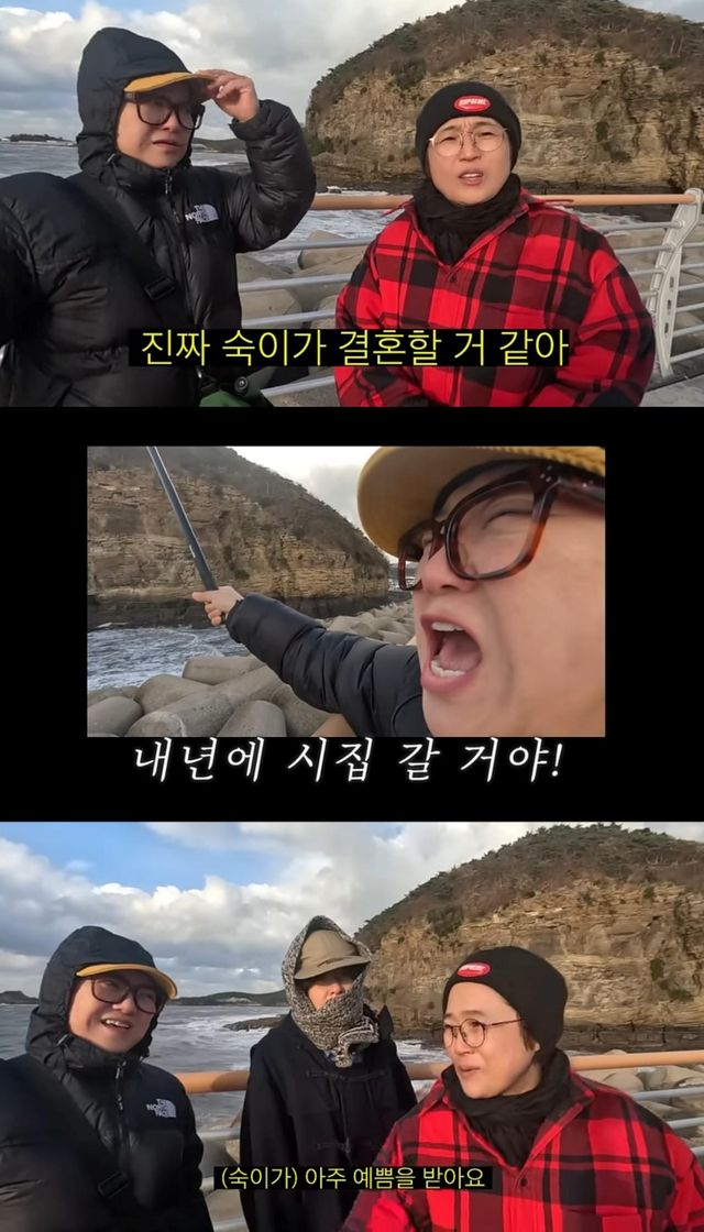 최근 김숙은 30년 지기 송은이, 최강희와의 여행기를 유튜브 채널에 공개했다. 영상 속 송은이는 새해에 대해 이야기하던 중 "2025년 예능판을 뒤집을 기대작, 저는 그 프로그램을 통해서 진짜 숙이가 결혼할 거 같다"고 깜짝 선언했다.