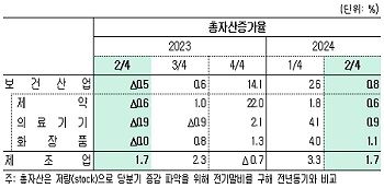제약(△0.6 → 0.6%), 의료기기(△0.9 → 0.9%), 화장품(△0.0 → 1.1%) 모두 총자산증가율이 전년동분기 대비 소폭 상승하며 감소세에서 증가세로 전환됐다.