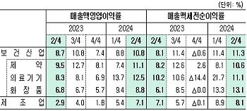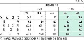 2024년 2/4분기 보건산업 제조업체 성장성 및 수익성, 안정성 모두 청신호가 커졌다.
