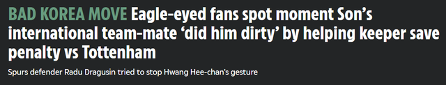 '더선'은 "황희찬의 제스처에 대해 한 팬은 '그가 쏘니에게 더티한 짓을 했다!'라는 말을 했다"고 적었다.