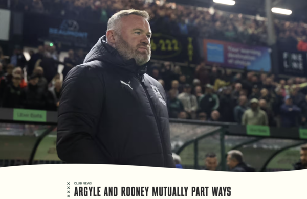 루니 감독은 “플리머스 아가일은 항상 내 마음 속에 특별한 자리를 차지할 것이며, 앞으로도 그들의 성과를 관심있게 지켜볼 것”이라는 작별 인사를 전했다”