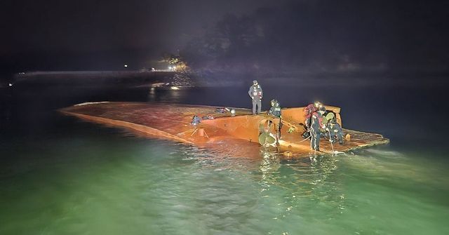 지난달 30일 충남 서산시 팔봉면 고파도 인근 해상에서 83t급 차도선이 전복돼 해경이 실종자 수색 작업을 벌이고 있다. / 태안해양경찰서