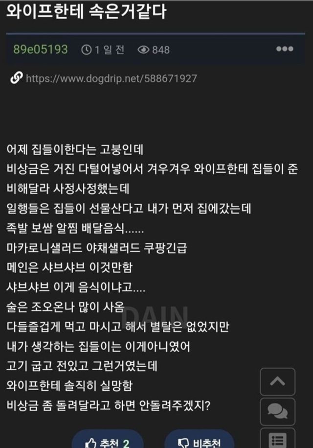 와이프한테 속은것 같다