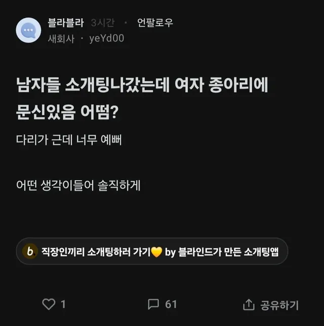 남자들 소개팅녀 종아리에 문신 있으면 어떰?