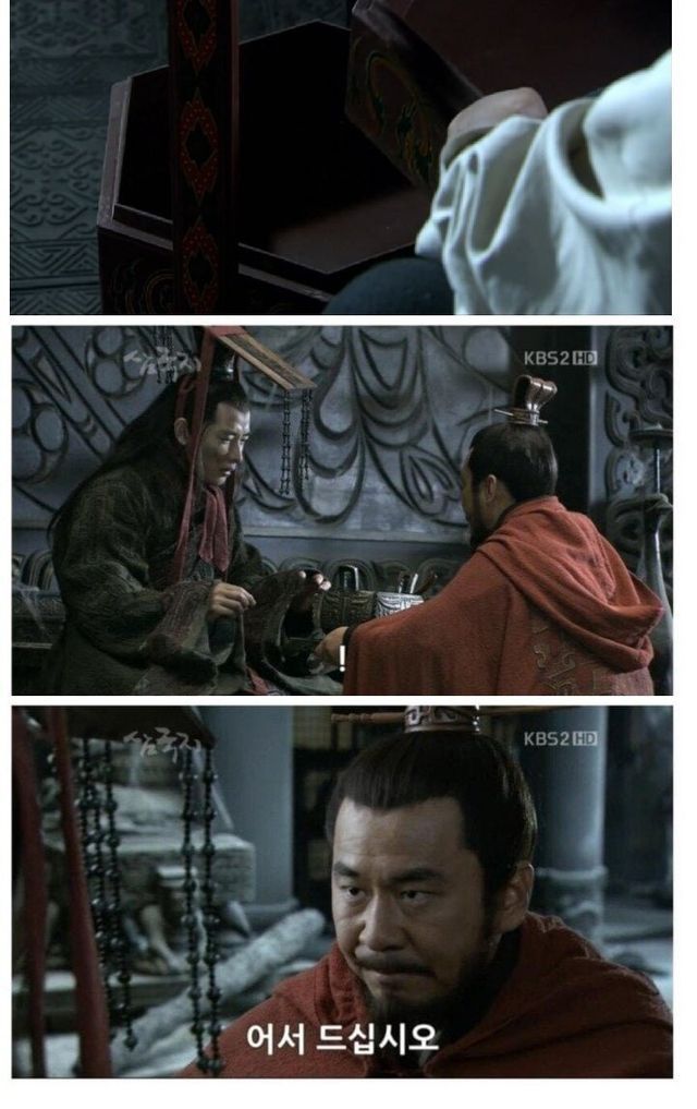 황제에게 고깃국과 밀떡을 바치는 조조.jpg