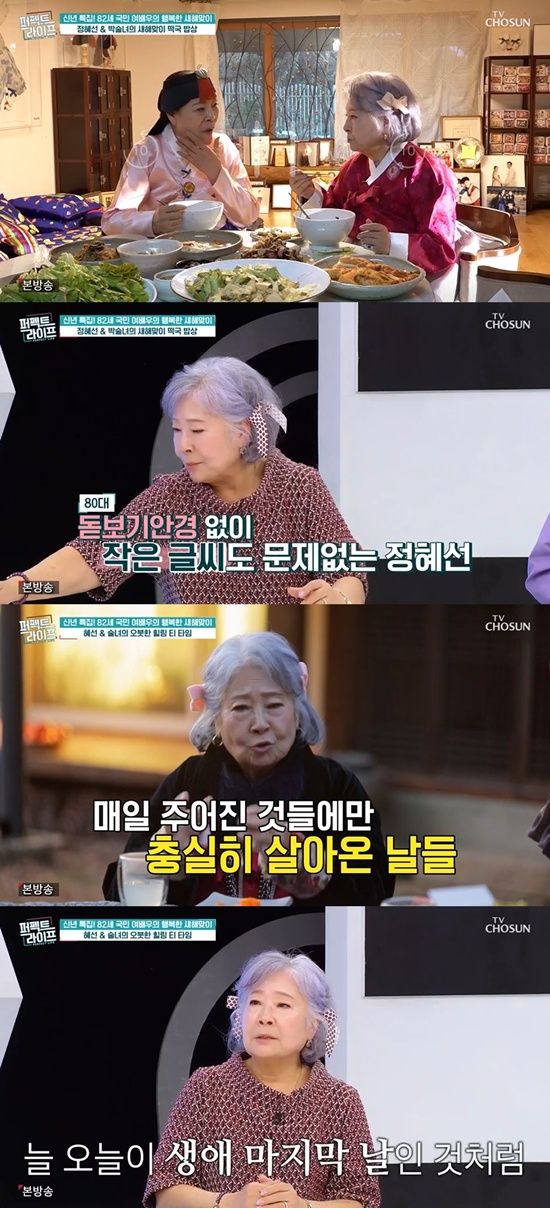 1일 방송된 TV조선 '퍼펙트 라이프'에는 82세 국민 배우 정혜선이 게스트로 출연했다.