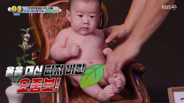 현조의 아기누드 사진도 촬영했다. 강재준은 “사진관에 히터를 틀어 현조가 더워했다”고 밝혔다. 여기에 집중을 높이기 위한 강재준의 탬버린 소리가 더해지니 현조는 결국 울음을 터뜨렸다.