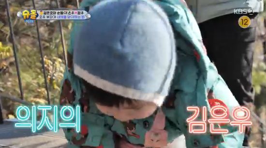 이윽고 지친 은우가 멈춰서자 김준호는 “힘들면 쉬어도 돼. 포기만 안 하면 돼”라며 그를 응원했다. 이에 은우는 “포기란 없다”라며 네 발로 기어 계단을 오르는 집념을 보여 놀라움을 자아냈다. 이를 본 김준호는 “여기까지 잘 와줬으니까”라며 은우와 정우를 안고 정상까지 빠르게 올랐다.