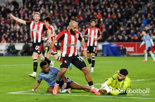 아스널의 우세가 예상됐는데, 선제골의 주인공은 브렌트포드였다. 전반 13분 중원에서 볼을 따낸 브렌트포드는 역습을 나섰다. 음뵈모가 우측면을 허물었고, 왼발 슈팅으로 니어 포스트를 노렸다. 브렌트포드가 1-0으로 앞서갔다.
