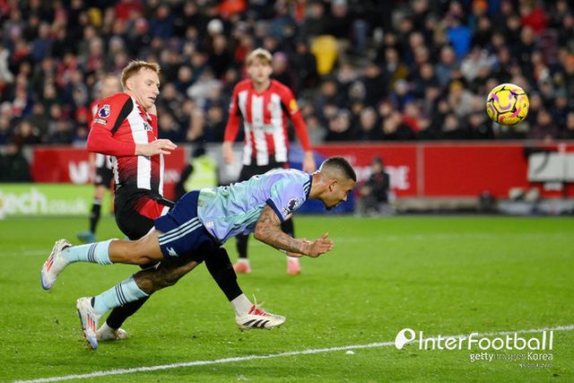 아스널이 뒤이어 균형을 맞췄다. 전반 29분 브렌트포드 페널티 박스 앞쪽에서 치열한 볼 경합이 이어졌다. 뒤쪽으로 흐른 볼을 파티가 중거리 슈팅으로 연결했다. 플레컨 골키퍼가 선방했으나 앞쪽에 있던 제수스가 헤더로 마무리했다. 1-1로 동점이 됐다.