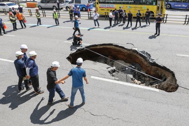 # 지난해 8월 29일 서울 서대문구 연희동 도로에서는 가로 6m, 세로 4m, 깊이 2.5m에 이르는 거대한 땅꺼짐(싱크홀)이 발생했다. 이 사고로 도로를 달리던 자동차 한 대가 통째로 땅속에 빠졌다. 차에 타고 있던 운전자가 중상을 입고 병원으로 옮겨졌고, 동승자도 병원으로 이송됐다.