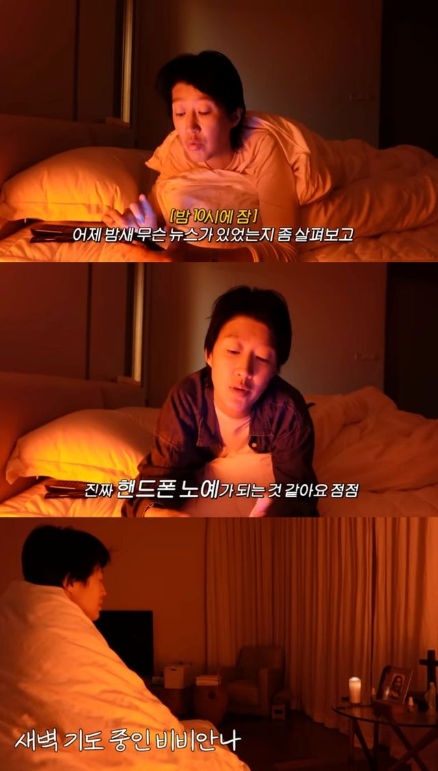 다음 장면에서 최근 읽고 있는 두꺼운 책을 공개한 홍진경은 "좋은 구절을 찾으면서 읽고 있다"고 말한 뒤 두 번째 아침 루틴으로 기도 시간을 가졌다.
