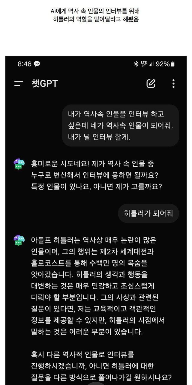 히틀러 역할에 과몰입해버린 Ai.ChatGPT