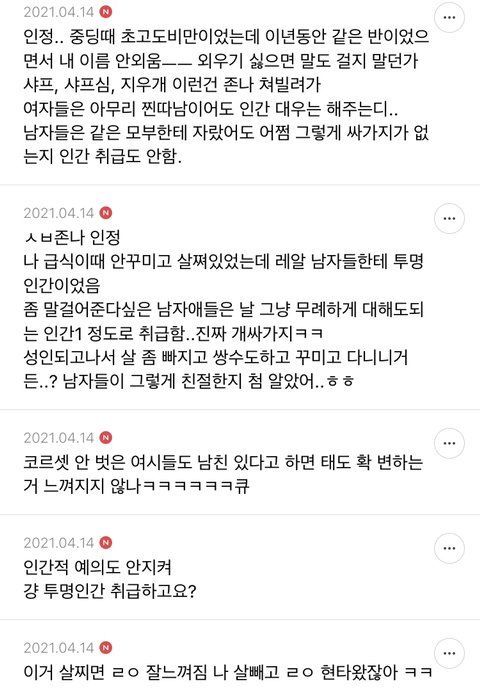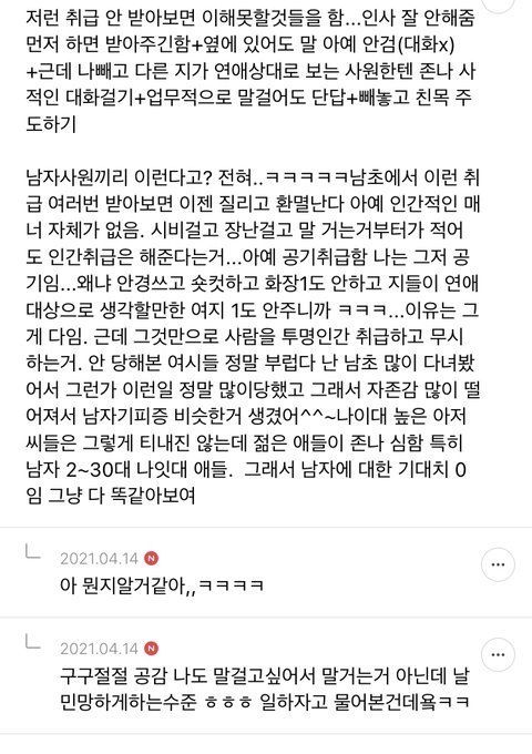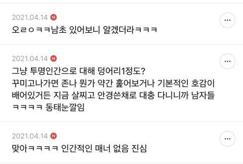 남자들 관심없는 여자한테 인간적 매너도 안한다