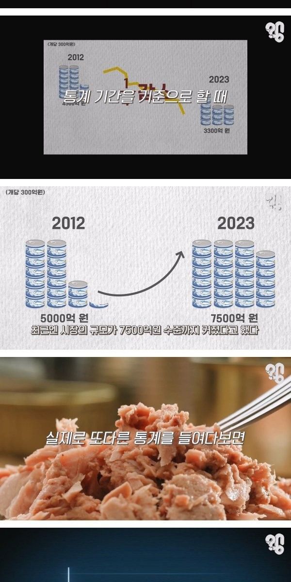1. 참치캔 판매량이 줄었다는 통계가 나옴