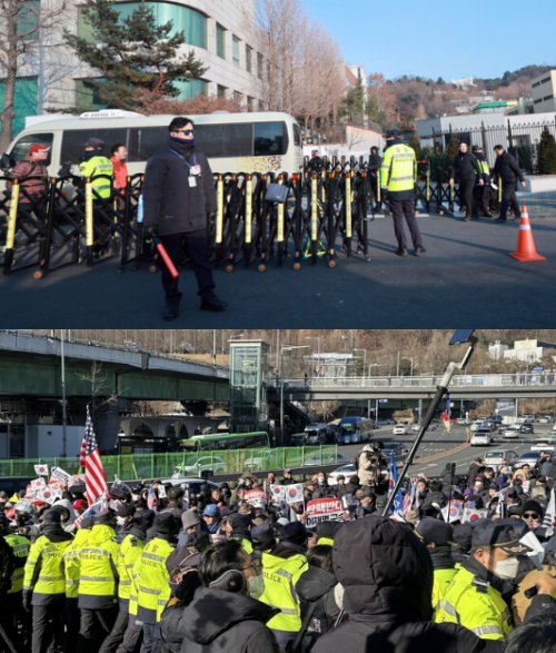 경찰은 충돌을 막기 위해 관저 앞 인도 통행을 차단했으나, 군집한 인원들은 흩어지지 않고 경찰과 대치 상태를 유지하고 있다. 경찰은 아직 강제 해산 조치를 취하지 않은 상태다.