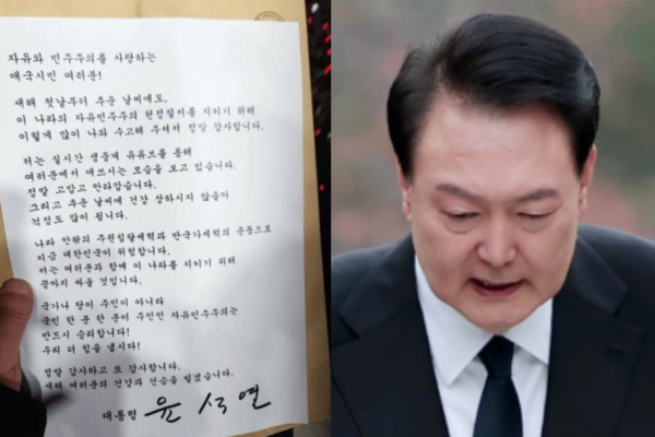 윤석열 대통령은 전날 관저 앞에 모인 지지자들에게 메시지를 보내 “이 나라의 자유민주주의 헌정질서를 지키기 위해 나와 주셔서 감사하다”며 “실시간 생중계를 통해 여러분의 노고를 보고 있다”고 밝혔다.