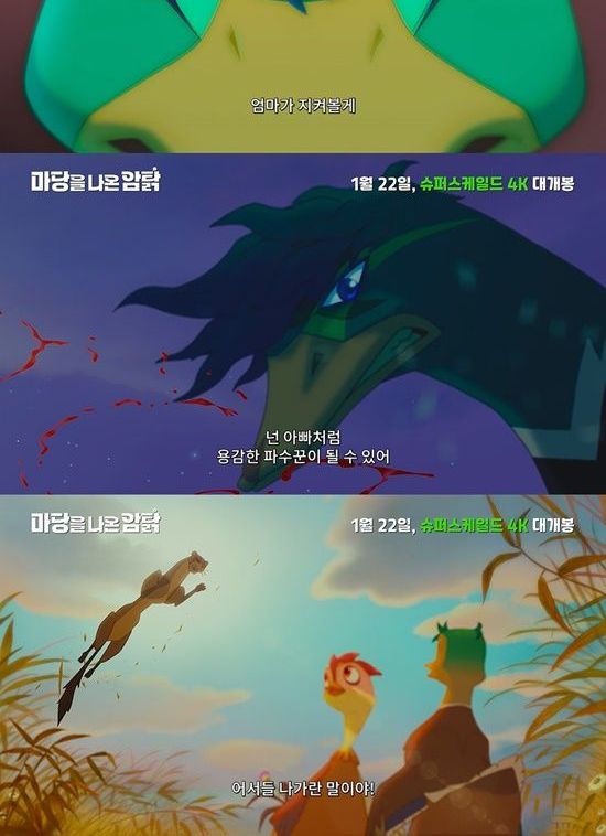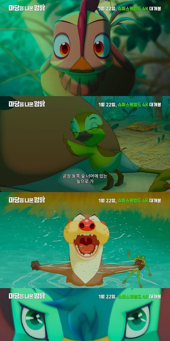 여기에 '더 넓은 세상을 향한 위대한 모험'이라는 카피는 슈퍼스케일드 4K 기술로 스크린 가득 펼쳐질 잎싹과 초록의 놀라운 도전을 기대케 한다.